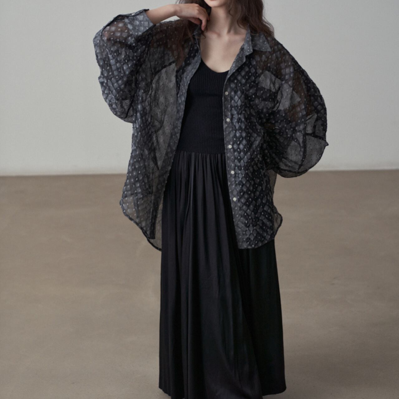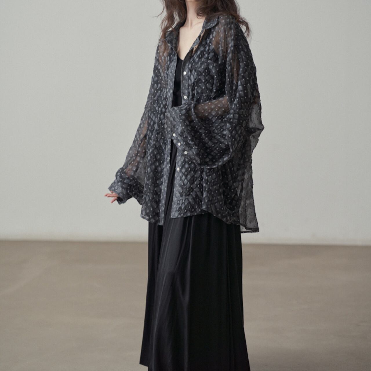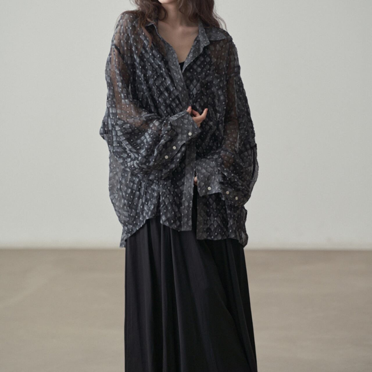シースルー素材とダイヤ柄の組み合わせが魅力的なシャツ。