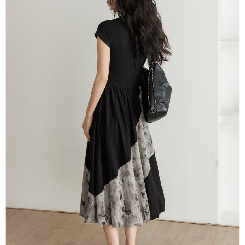 シンプルながらも個性を放つ、バイカラー切替ワンピース。
