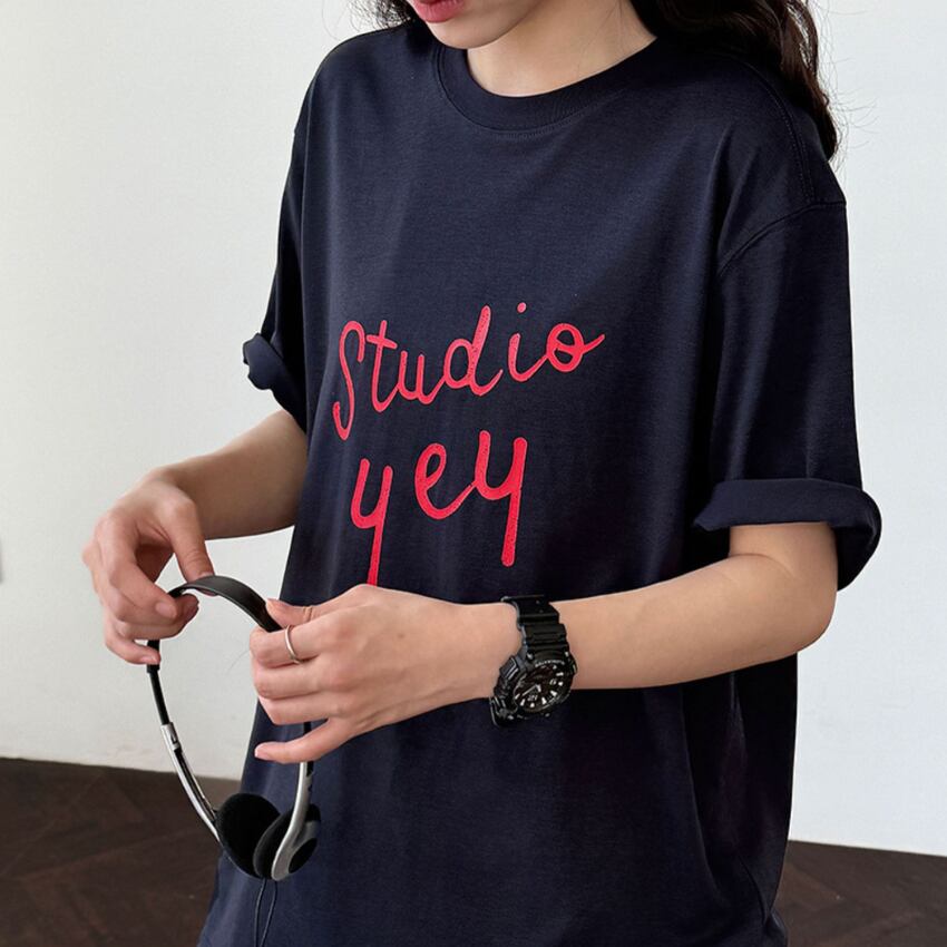 洗練されたロゴプリントが魅力のクルーネックTシャツ。