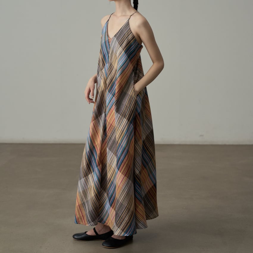 一枚でサマになる、チェック柄キャミソールワンピース。