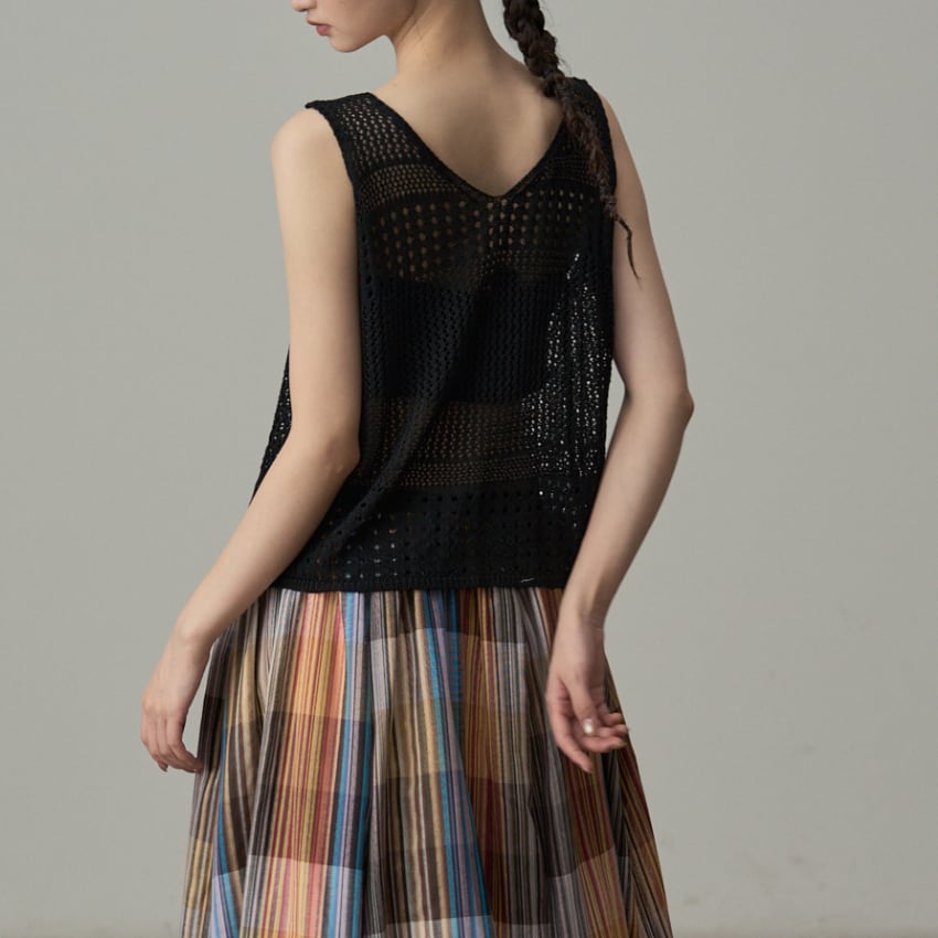 シンプルなデザインでありながら、透かし編みがポイントになったノースリーブトップス。