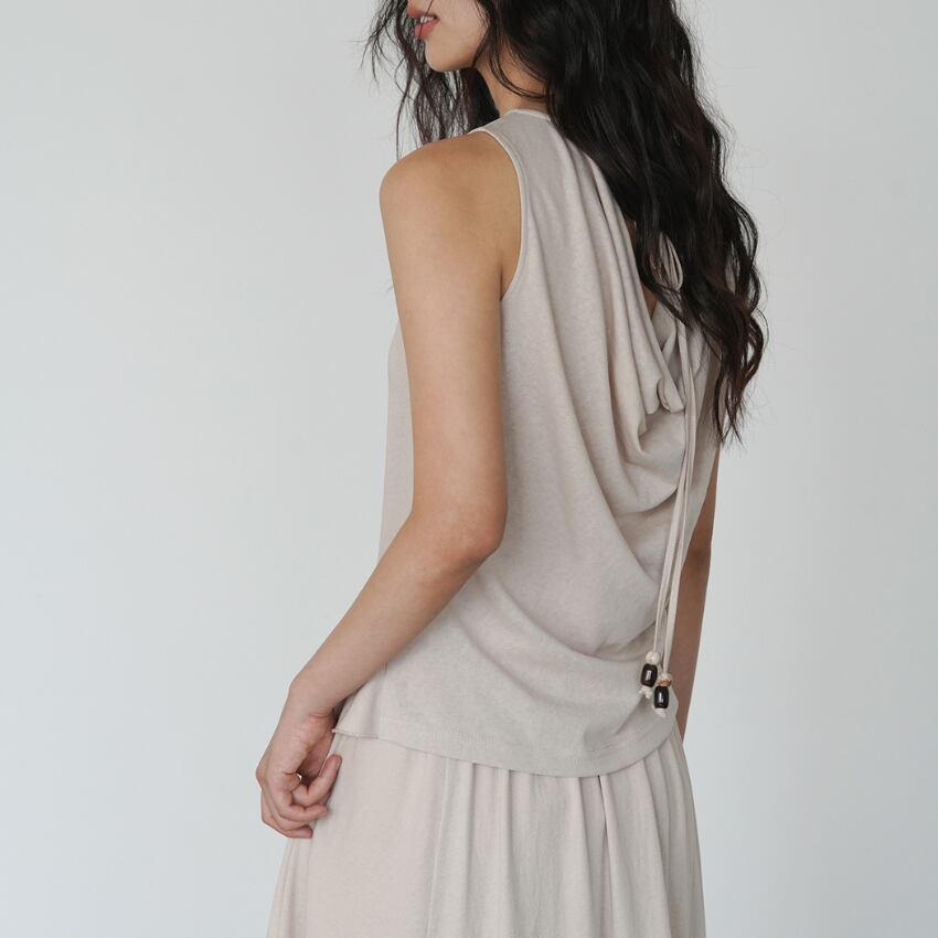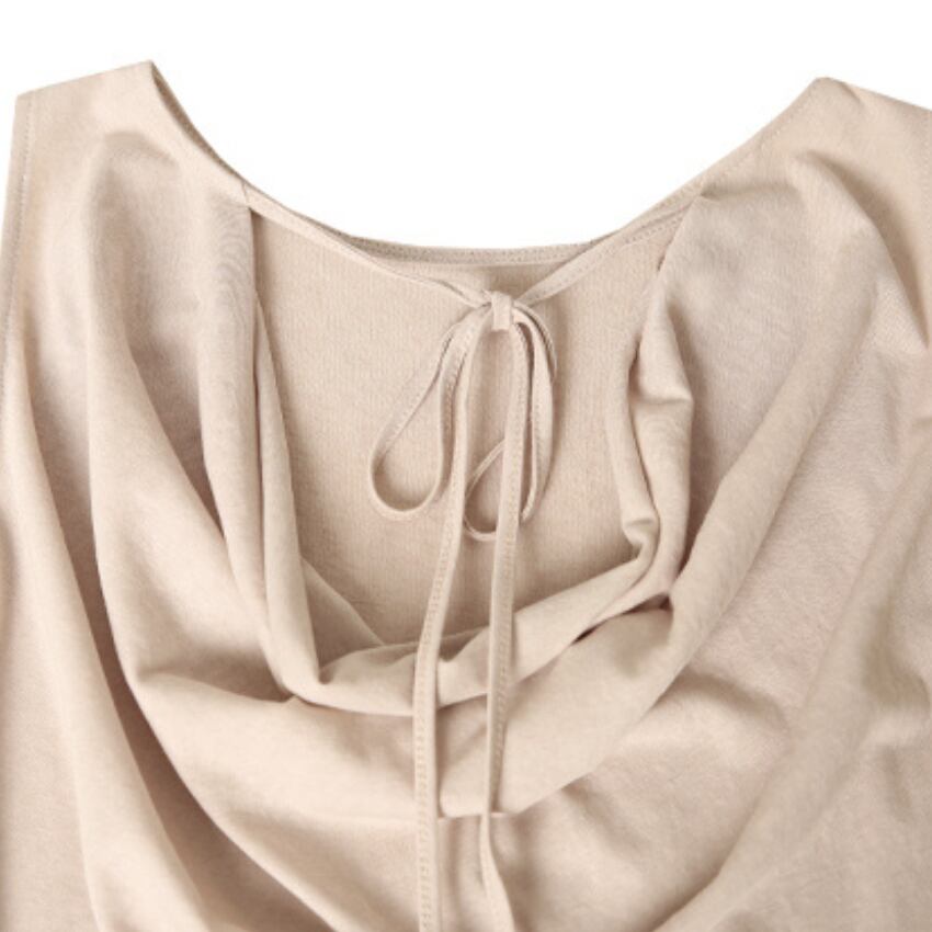 【set up】drape back-open frill sleeveless top & long skirt L0558