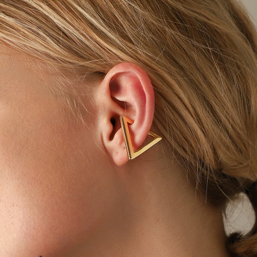 シンプルな三角形デザインのイヤーカフは、どんなスタイルにも合わせやすい万能アイテムです。