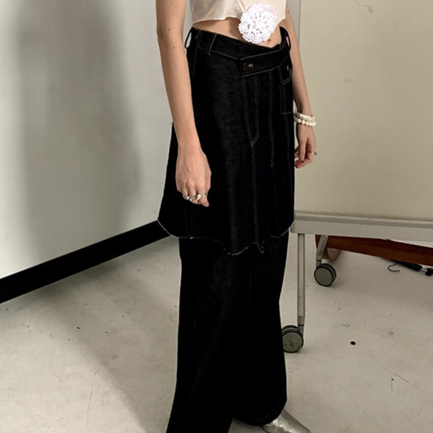 スカートとパンツをレイヤードしたようなユニークな一体型デザインが目を引くアイテム。