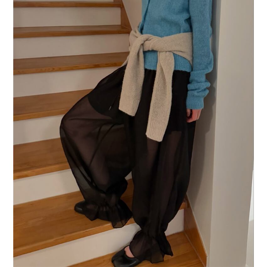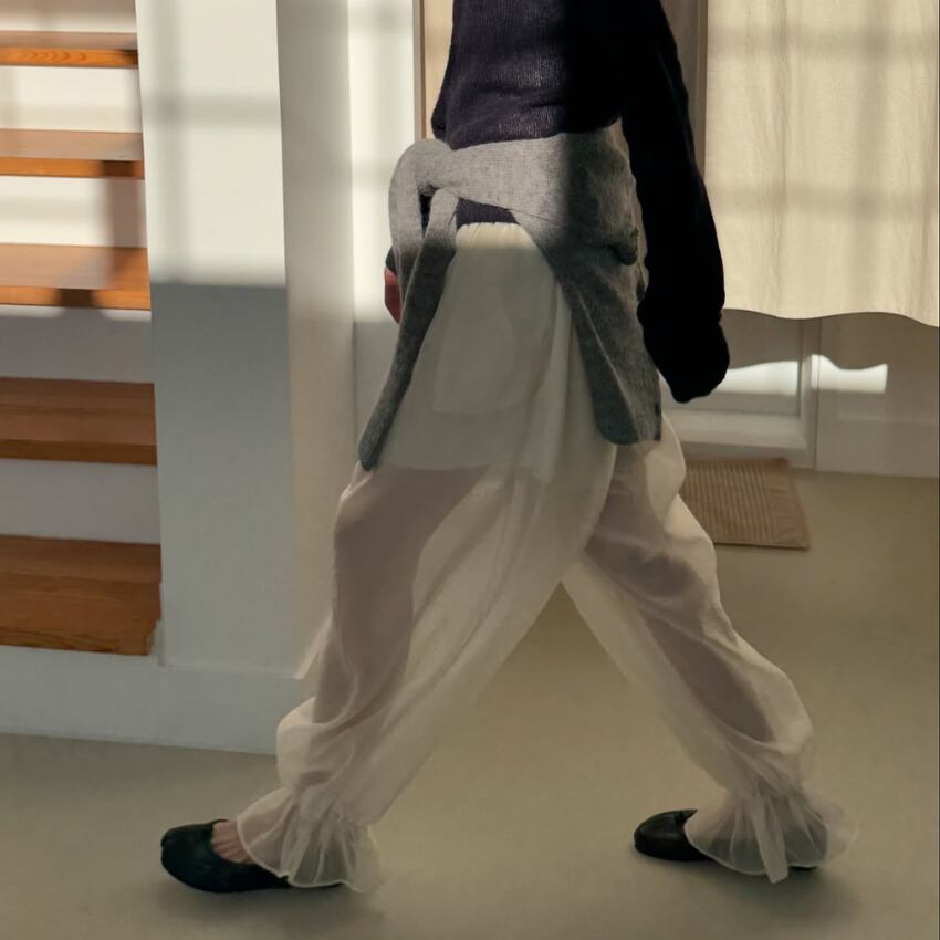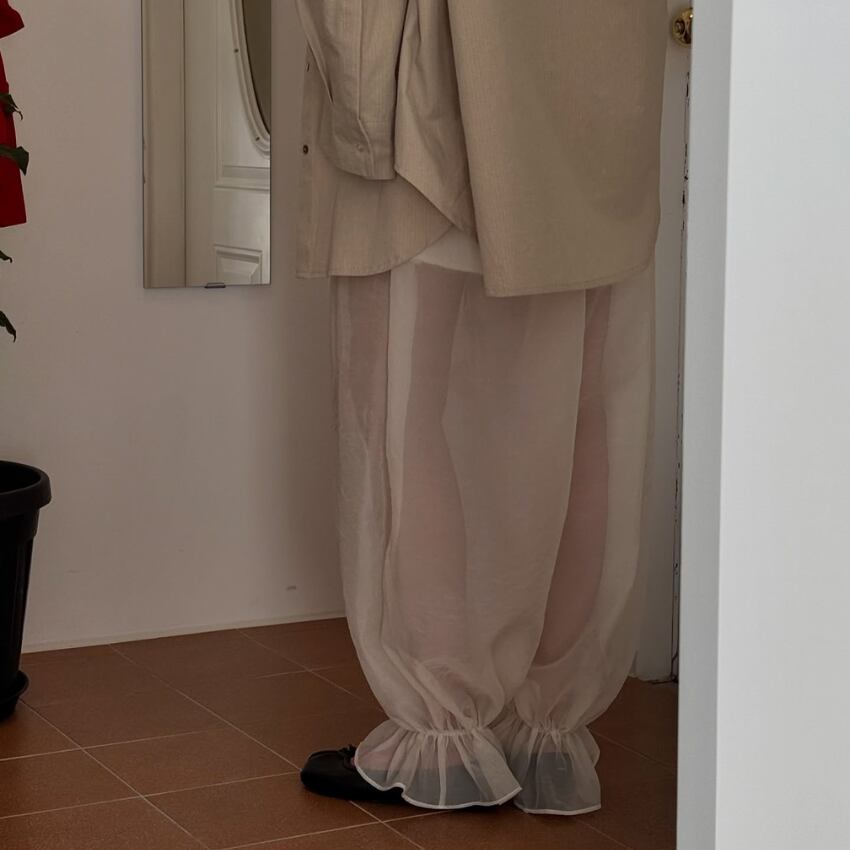 透け感のある素材が、夏のコーディネートに涼しげなアクセントをプラスし、着るだけでこなれた雰囲気を演出します。