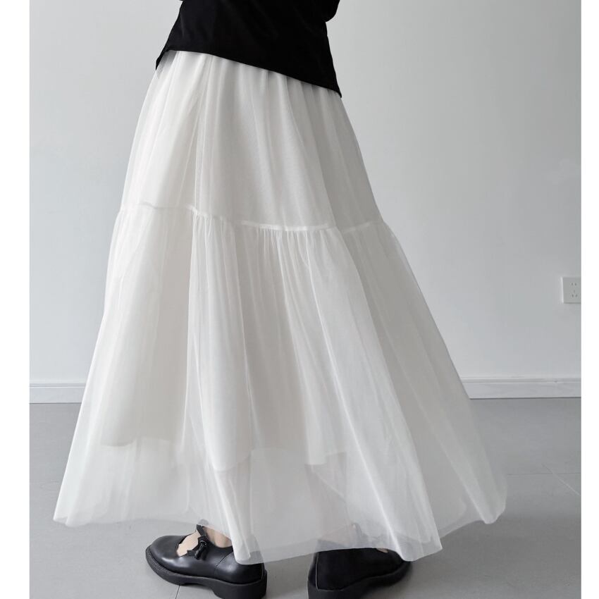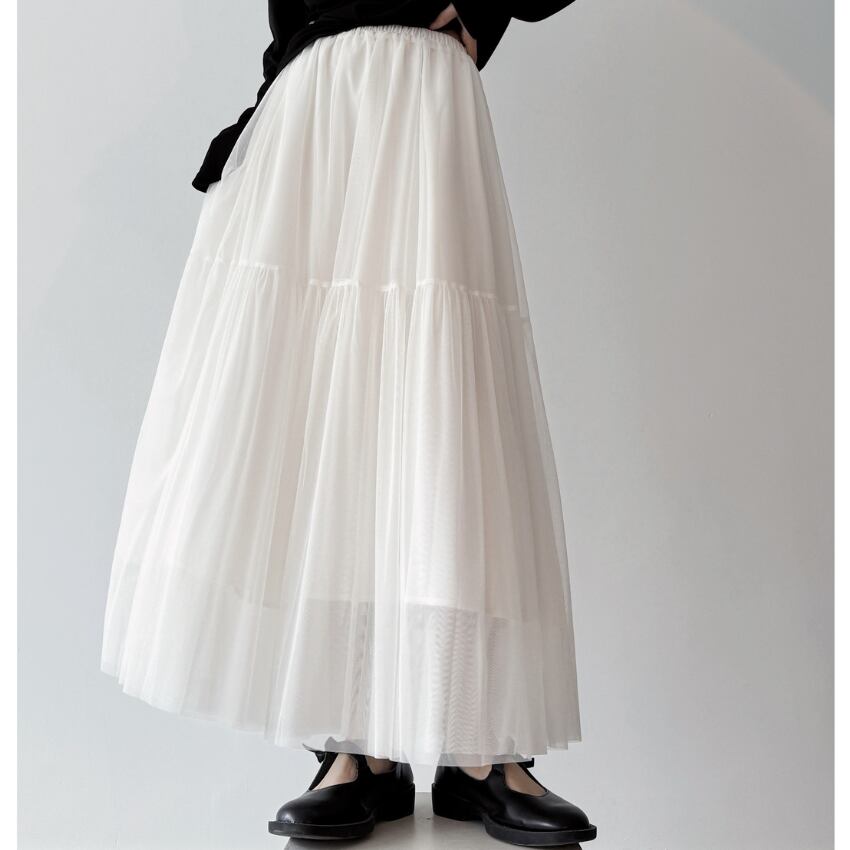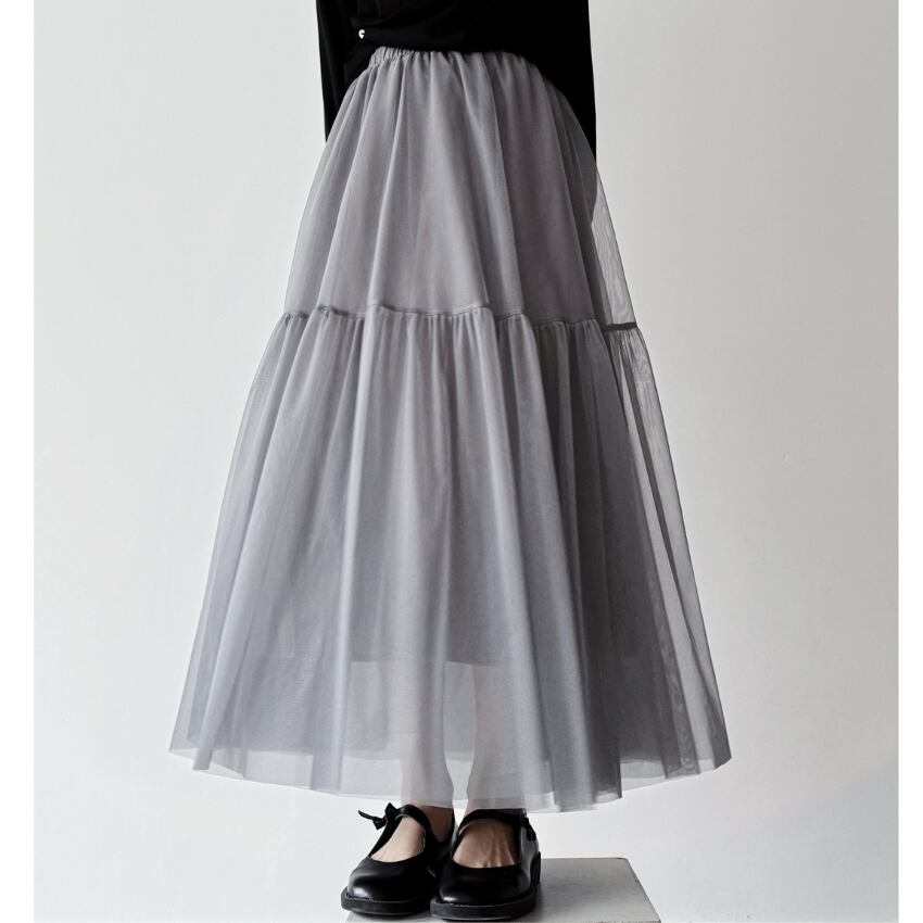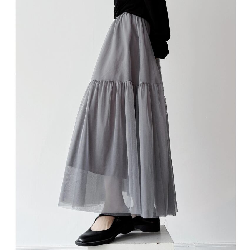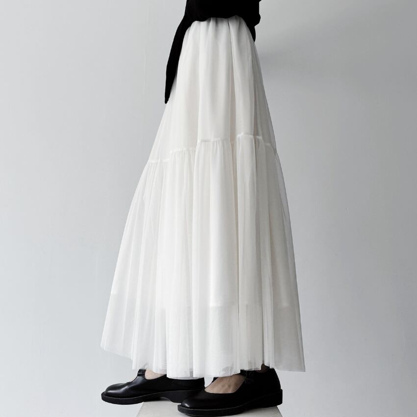一枚で主役級の存在感を放つ、ボリュームチュールロングスカート。