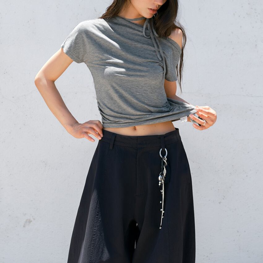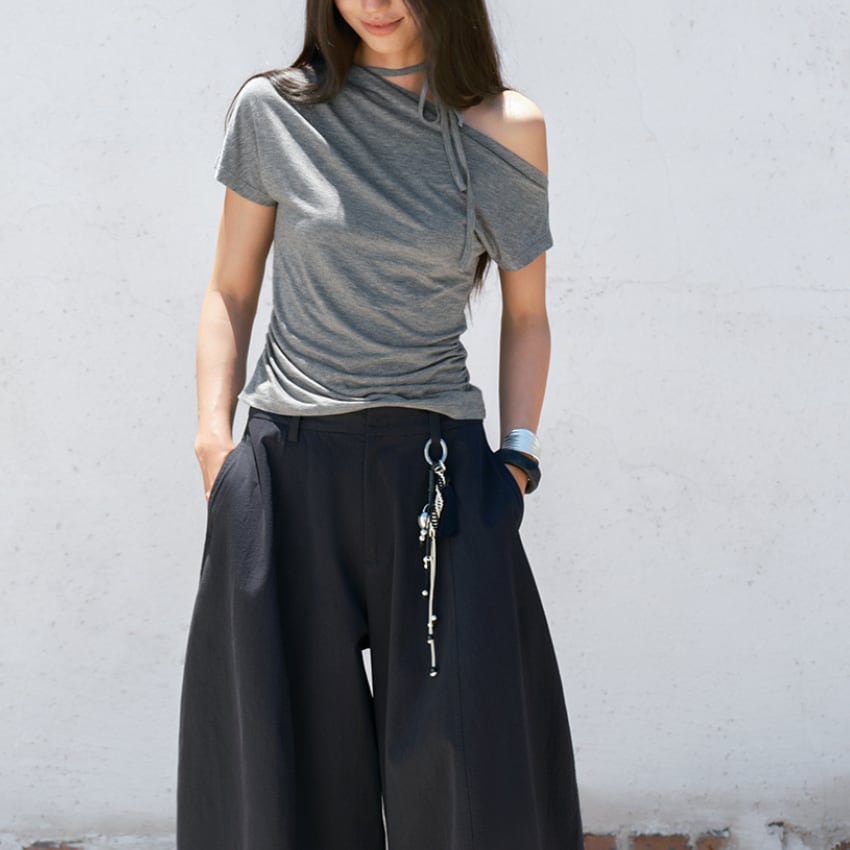 着るだけでこなれた印象になる、ワンショルダーノースリーブトップス。